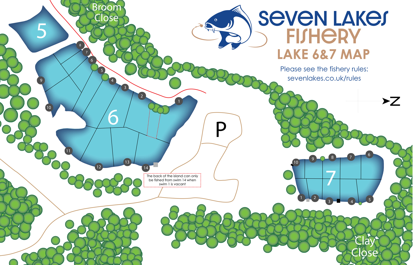 At Seven Lakes we like all anglers to fish to the half way rule in most general cases. That said with the shape and layout of Lake 6 we have issued a swim map to enable fun and sensible fishing. Due to the back of the island being such a fantastic feature, we wanted to keep the option of fishing there open to anglers during quiet periods. Please see rule on map.